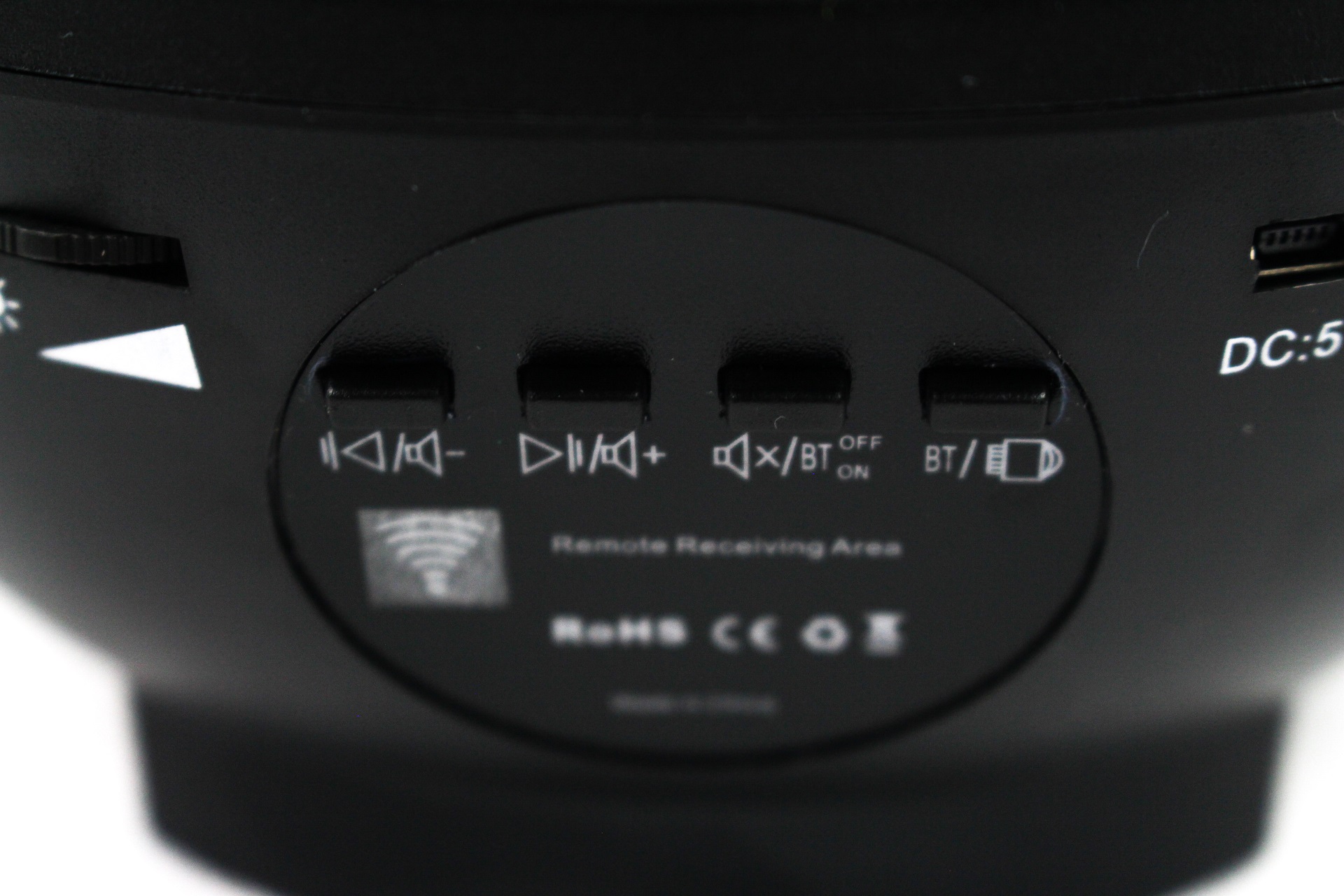 Last but not least, I would like to mention the integrated Bluetooth speaker. To use this, you have to connect a cell phone to the projector. This is quite easy via Bluetooth, and there is a button on the back for the connection. Control is also possible via the buttons on the back of the device. Likewise, the speaker can be controlled with the remote control since was very simple. Only the sound quality is not optimal. At least it is not as high quality as it is advertised.