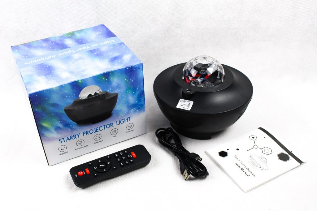 This basically includes everything you need to use the Galaxy Projector. Only a power adapter is not included. However, you can also use a power adapter from your cell phone or similar to connect it to a power outlet. Alternatively, power banks, laptops, or computers can also be used as a power source.